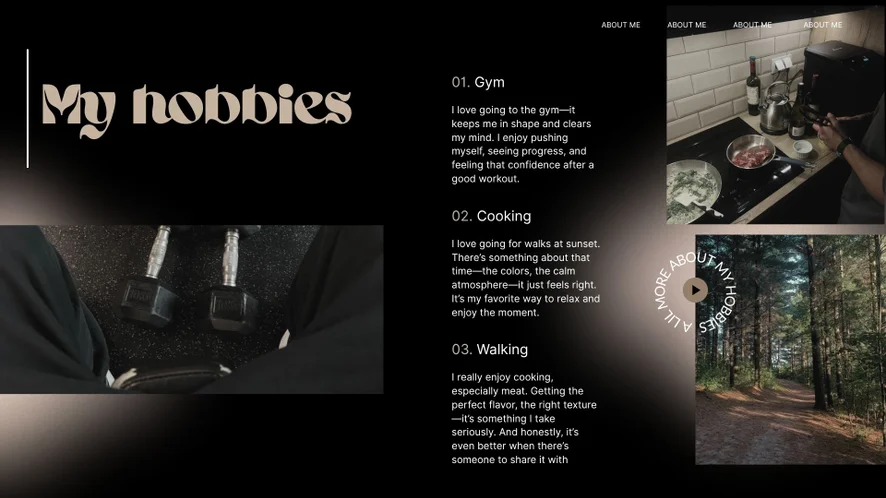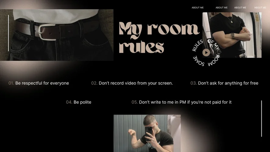 Footfetish, Plácání po zadku, Erotický tanec, Honění, Olejová show, Ponižování, Striptýz, Exhibicionismus, Hračky na bradavky, Hra s výstřikem, Pokyny k masturbaci, Jóga, Masturbace, Orgasmus